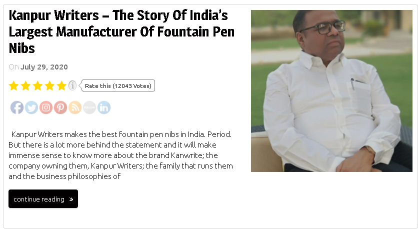 Founder Mr. Laxmi Shankar Awasthi with 10 years of prior experience working with a writing instrument industry, discovered a gap in the Indian market for quality fountain pen nibs. He embarked on a journey to start his own company Kanpur Writers in the city of Kanpur situated in the North Central region of India around 1986 along with his two sons – Co-Founders- Mr. Pradeep & Sandeep Awasthi with a vision to offer high quality nibs at affordable prices to the Indian pen manufacturers contributing to the growing demand of writing instruments in educational & professional sectors. During the 1990s-2000 decade, India registered the highest growth of all time in its literacy rate (13%) and Kanwrite manufactured 30,000+ nibs a day to ensure the demand of the nation was met.