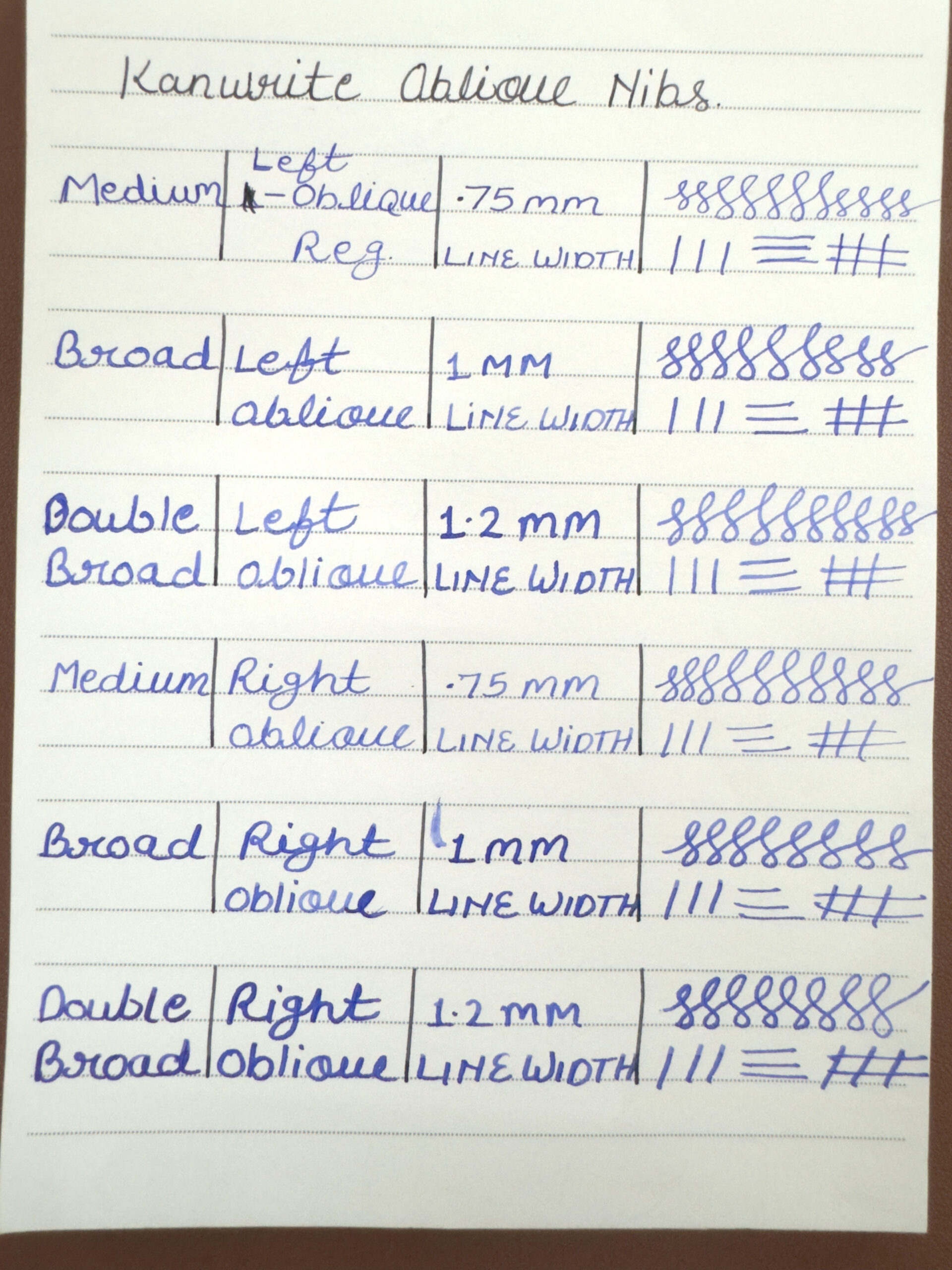 The oblique’s line-width variation is more subtle than the distinct broad down-stroke and narrow cross-stroke achieved with an italic or stub. The broadest stroke for an oblique is on the diagonal, giving your penmanship an understated character.