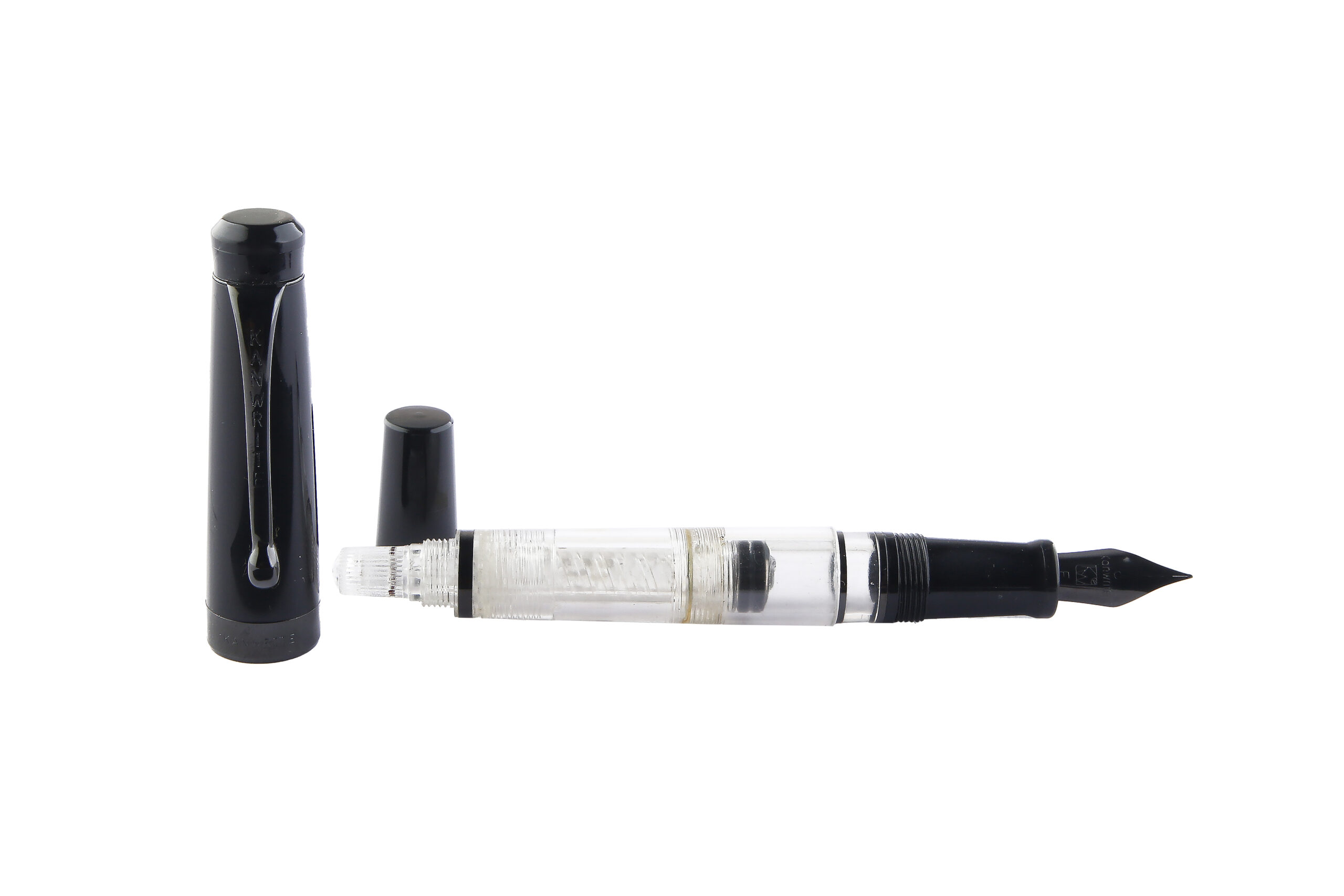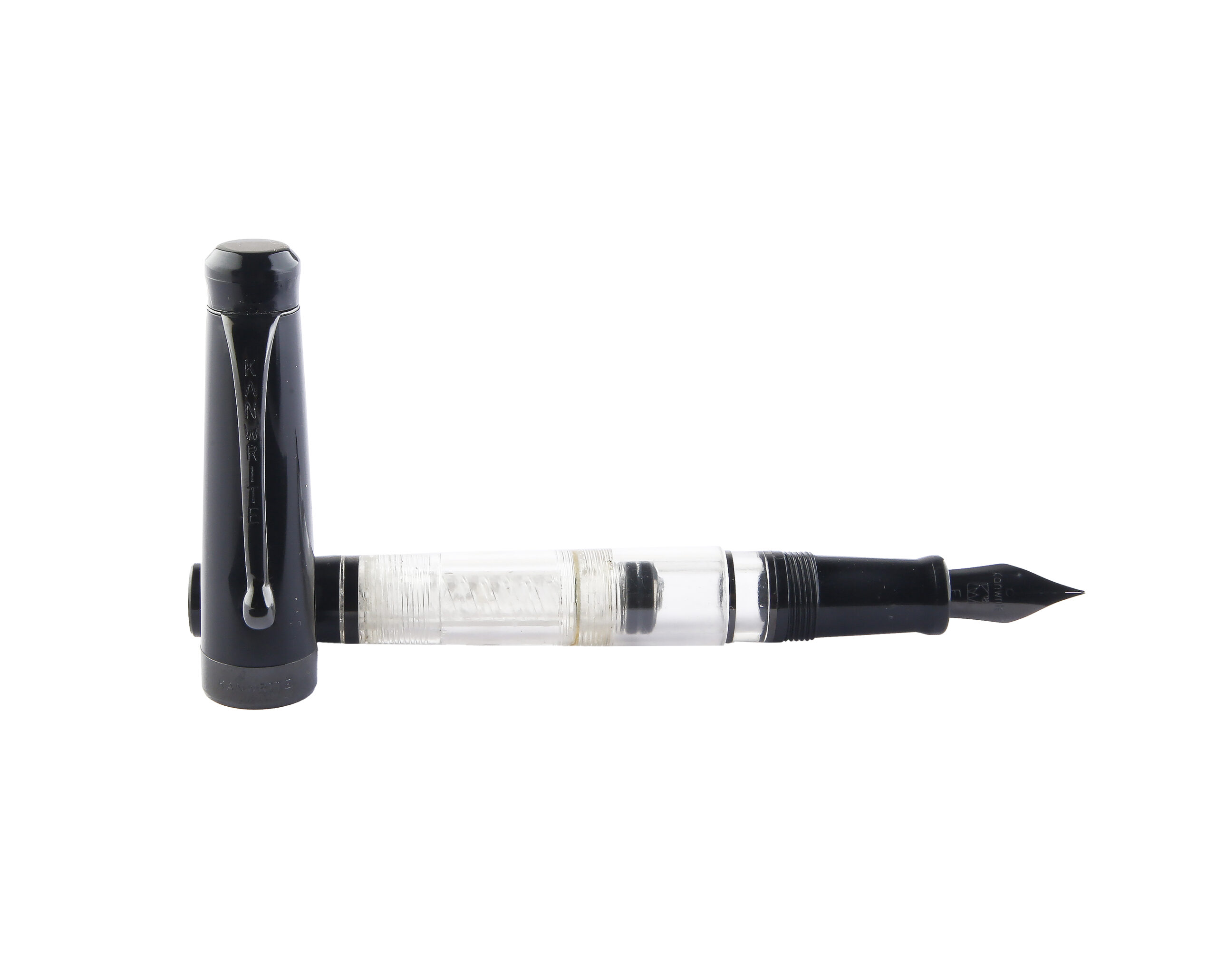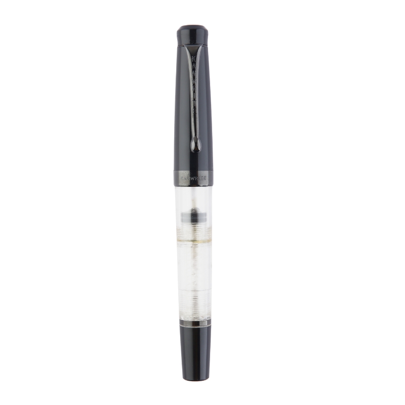 • Introducing the Dual Tone Demonstrator Black Cap of the Kanwrite Ebony Heritage. It is a classic fountain pen which features a piston filler mechanism. The classic design coupled with some PVD black coated trims and nib provides an elegant look. The Heritage offers a plethora of nib sizes with ebonite feeds.. A balanced acrylic moulded pen with twist mechanism for filling ink, the best from the house of Kanwrite. It comes with a #6 nib Stainless Steel nib with an extraordinary number of 8 nib options- EEF ,Extra Fine, Fine, Medium, Broad, Double Broad, Fine Flex, Fine Ultra Flex featuring an ebonite feed. This pen is equipped with a replaceable screw in nib unit.