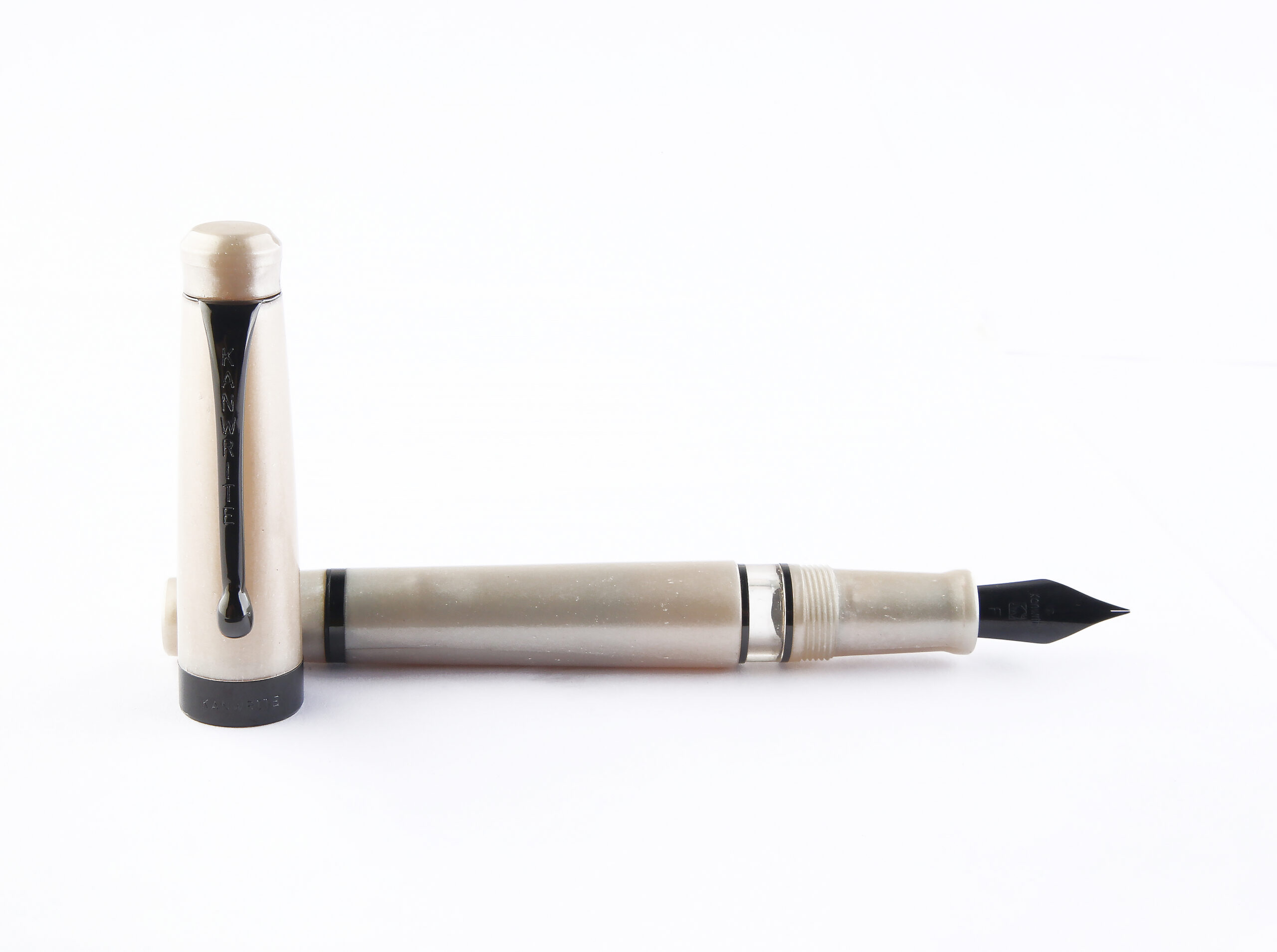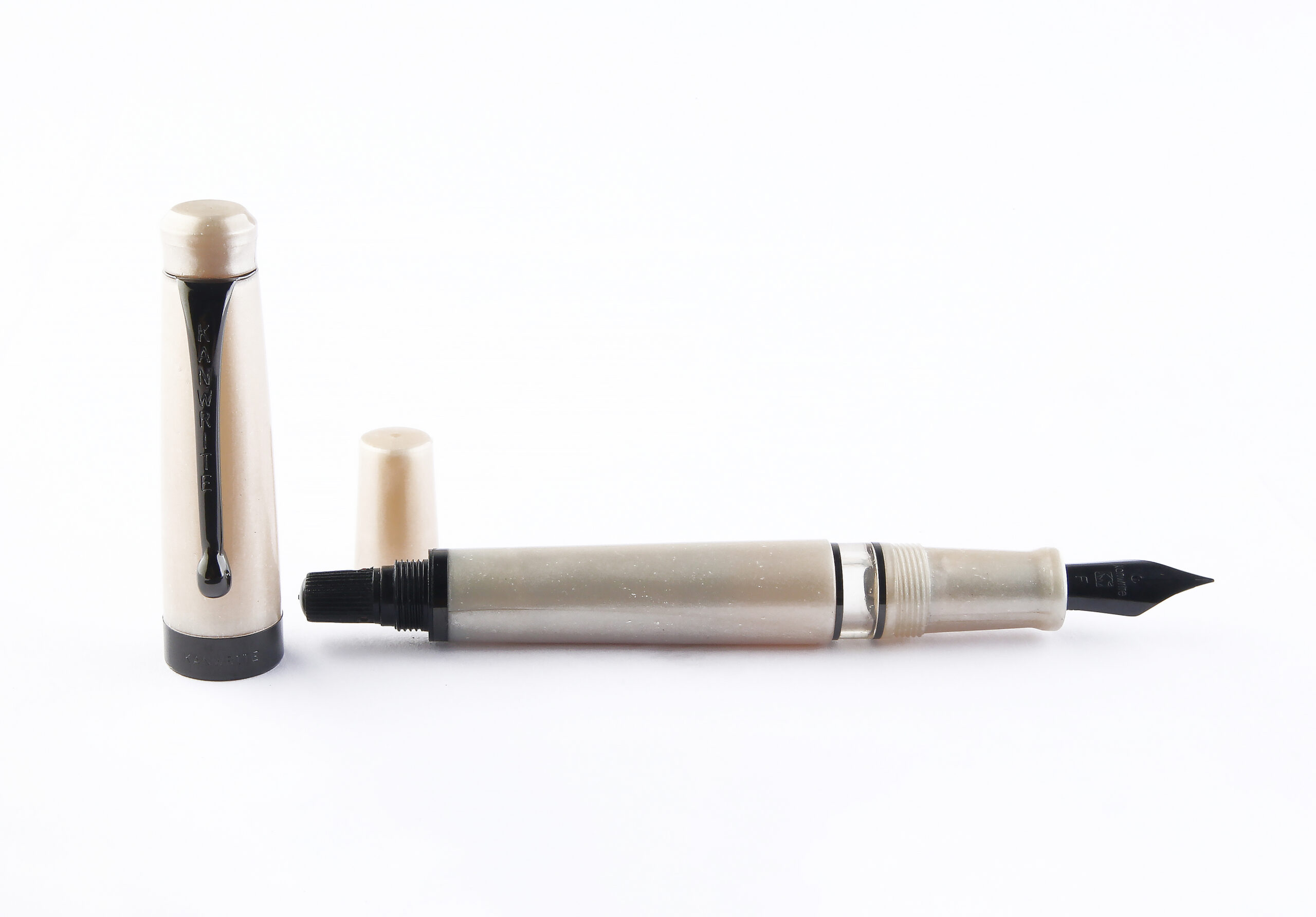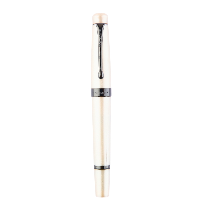 • Introducing the Pearl Ivory edition of the Kanwrite Ebony Heritage. It is a classic fountain pen which features a piston filler mechanism. The classic design coupled with some PVD black coated trims and nib provides an elegant look. The Heritage offers a plethora of nib sizes with ebonite feeds.. A balanced acrylic moulded pen with twist mechanism for filling ink, the best from the house of Kanwrite. It comes with a #6 nib Stainless Steel nib with an extraordinary number of 8 nib options- EEF ,Extra Fine, Fine, Medium, Broad, Double Broad, Fine Flex, Fine Ultra Flex  featuring an ebonite feed. This pen comes with a replaceable screw in nib unit.