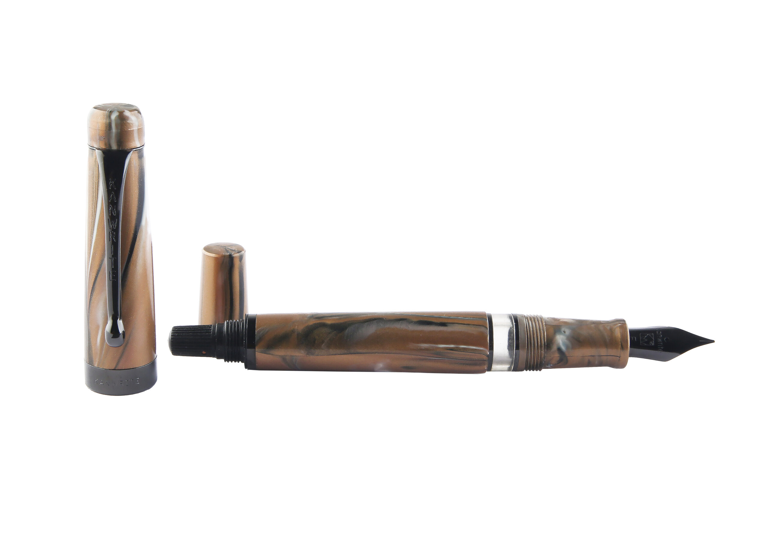 • Introducing the Tiger Brown color of the Kanwrite Ebony Heritage. It is a classic fountain pen which features a piston filler mechanism. The classic design coupled with some PVD black coated trims and nib provides an elegant look. The Heritage offers a plethora of nib sizes with ebonite feeds.. A balanced acrylic moulded pen with twist mechanism for filling ink, the best from the house of Kanwrite. It comes with a #6 nib Stainless Steel nib with an extraordinary number of 8 nib options- EEF ,Extra Fine, Fine, Medium, Broad, Double Broad, Fine Flex, Fine Ultra Flex featuring an ebonite feed. This pen is equipped with a replaceable screw in nib unit.