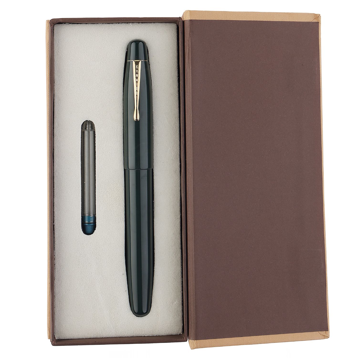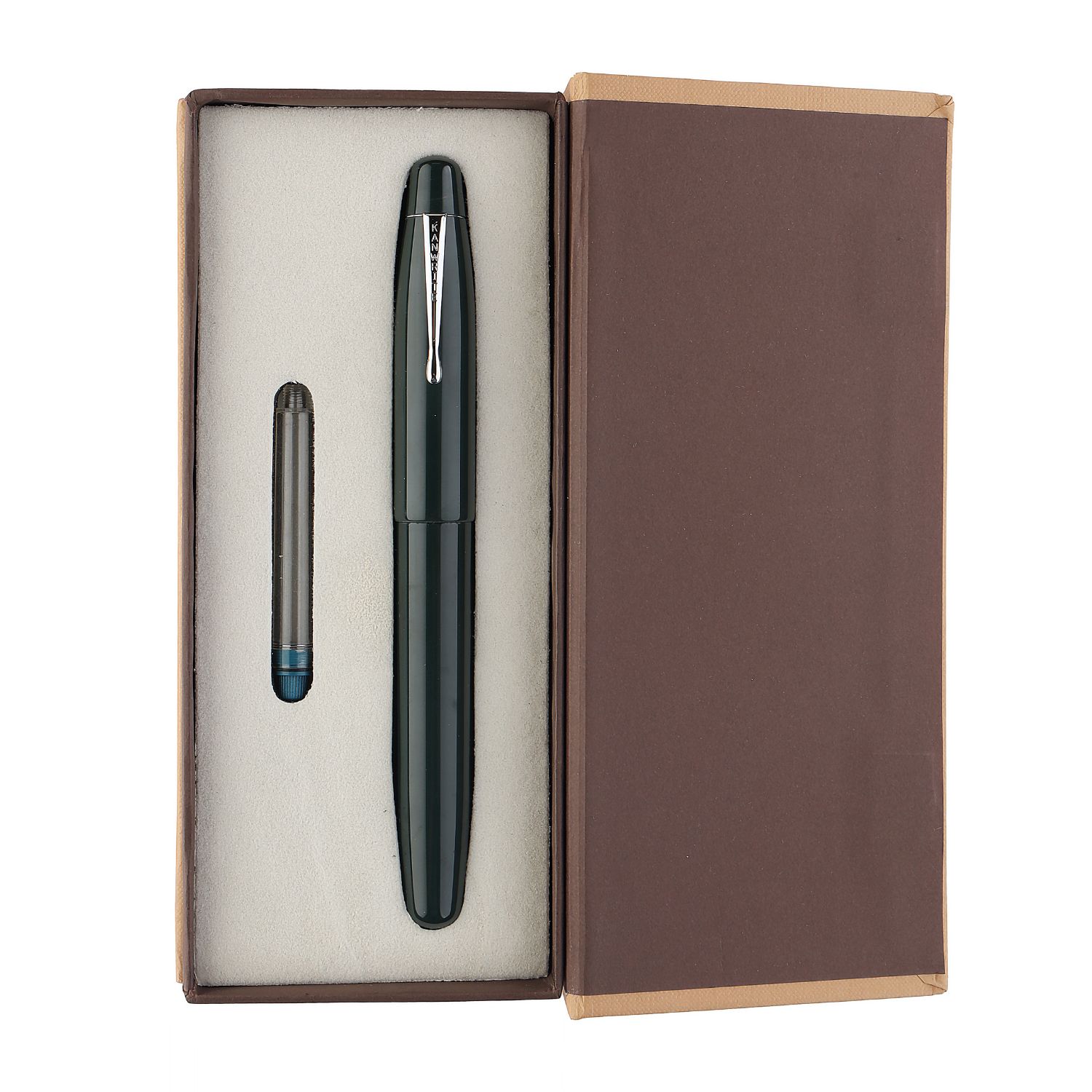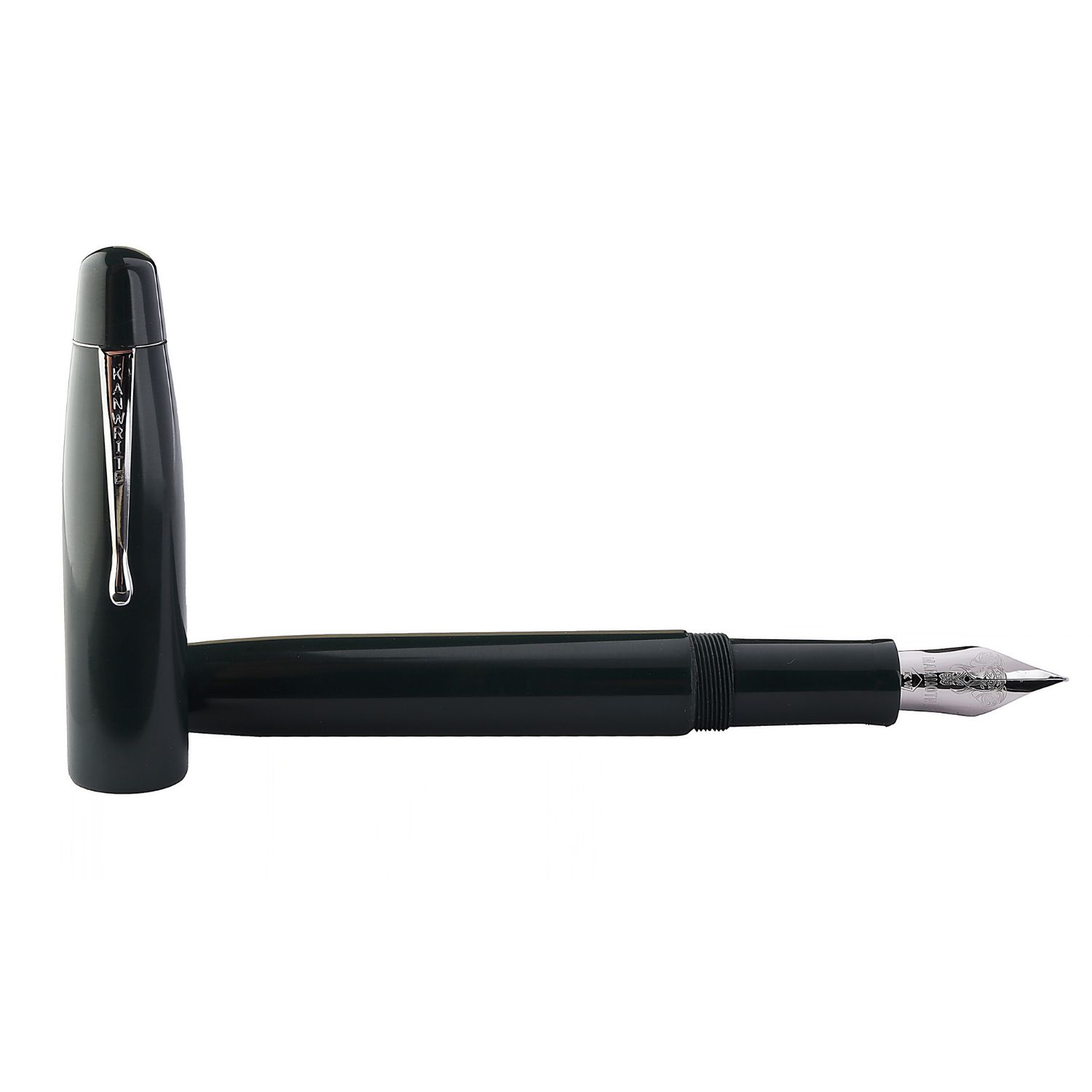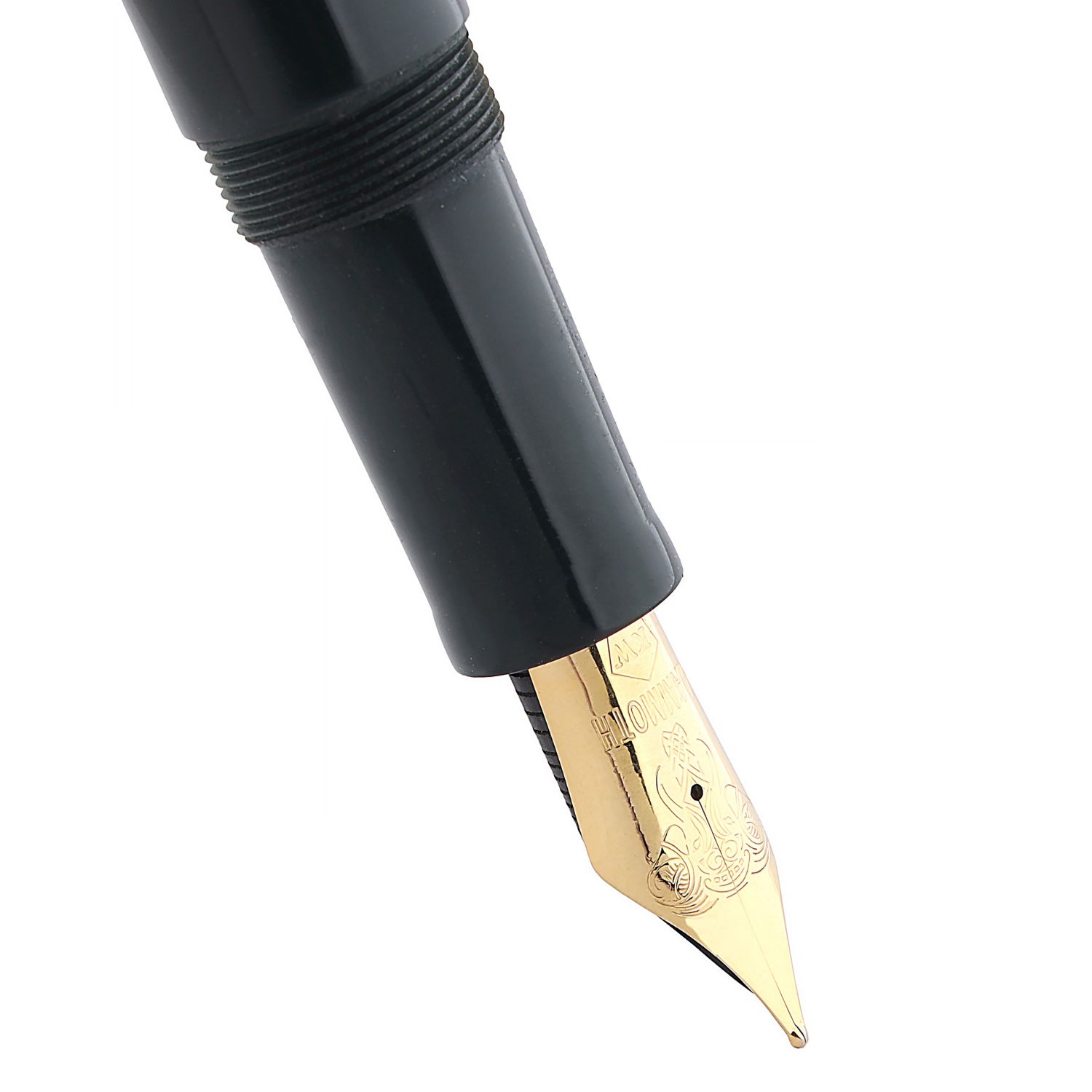 The large sized pen is handcrafted from Ebonite, a naturally produced resin material requiring special production processes. Ebonite material is very warm to the touch and its rich elasticity and unique texture provides the ultimate comfort, quality and character to the product.
