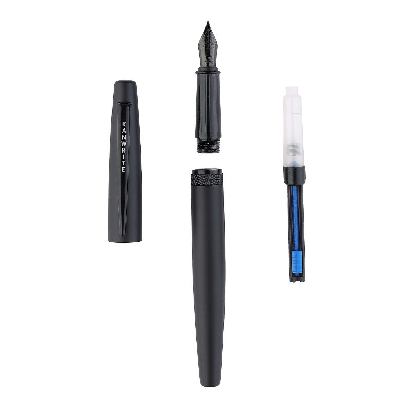 Kanwrite Spectra Matte Black Fountain Pen blends timeless craftsmanship with modern design. Built with a lightweight brass body, it delivers exceptional balance and stability for a comfortable writing experience. Its slim profile makes it a perfect pocket companion, ideal for everyday carry. The black PVD finish adds a bold, edgy look to the nib, complemented by the free flowing ABS plastic feeder ensuring smooth and consistent ink flow. Available in eight vibrant colors, Spectra comes with nib options of Fine and Medium offered in both Regular & Flex choices for expressive writing — a pen that truly adapts to your personal writing style.