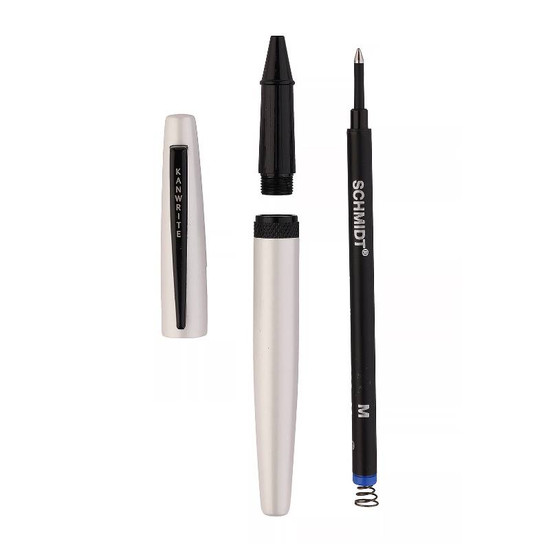 Kanwrite Spectra Pearl White Roller Pen combines effortless performance with everyday practicality. Built with a lightweight brass body, it delivers exceptional balance and stability for a comfortable writing experience. Its slim, pocket-friendly design makes it perfect for life on the go. Finished with sleek black accents for a modern edge, Spectra comes in eight lively colors in matte, glossy & pearl finish to match your personality. The Schmidt roller refill ensures a smooth, consistent flow, available in Fine (0.6 mm) and Medium (0.7 mm) ceramic tip sizes, with blue and black ink options — a true companion for seamless, stylish writing anywhere.